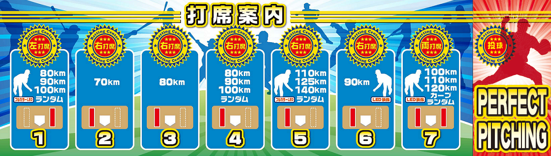 *VS(対戦機能)・・・通路側のコントロールBOXで球速及び高低を選択出来ます。